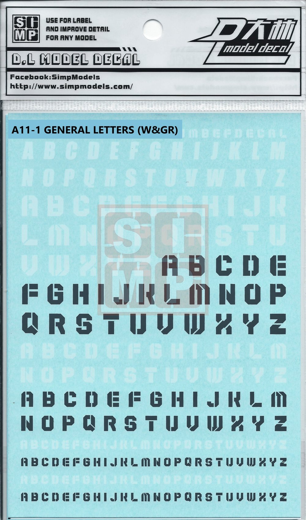 SIMPro Water Decals: A11-1 General Letters(White & Grey)
