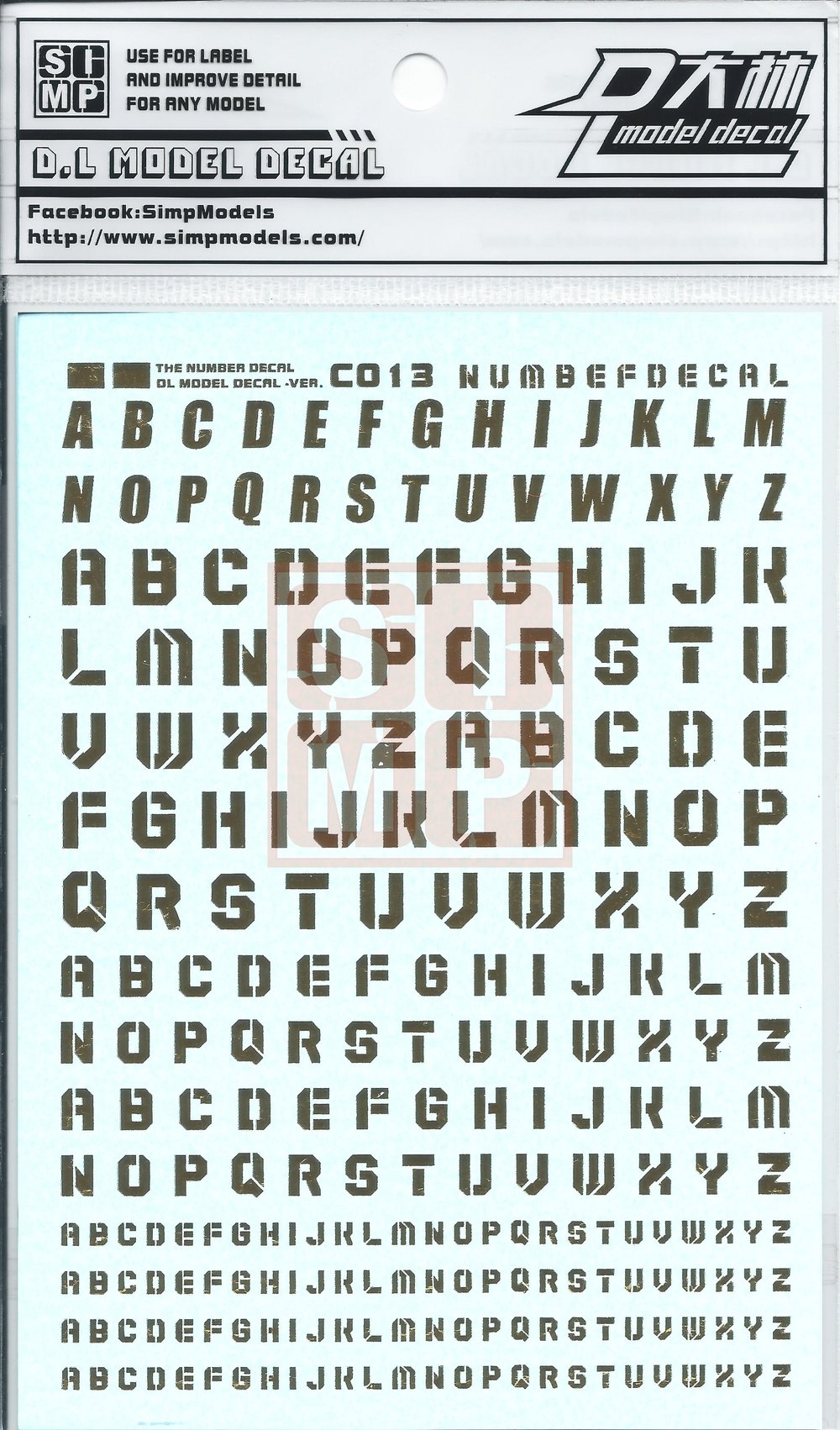 SIMPro Water Decals: A13 Letters Metallic Gold