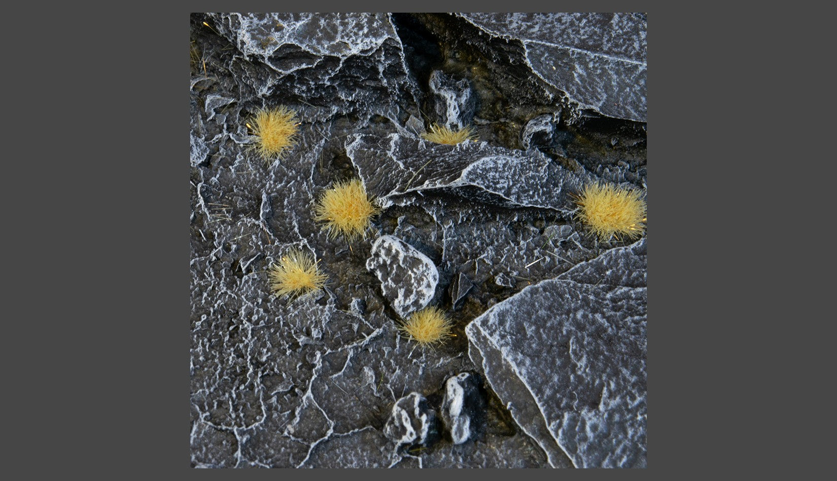Una hoja de plástico de 14,5 cm x 6,5 cm llena de mechones de hierba de jugador. Los mechones miden 2 mm de altura.
